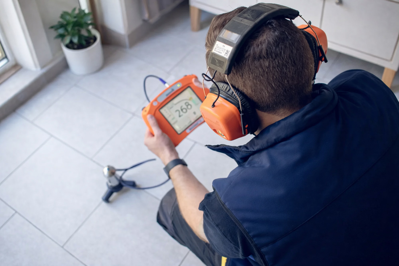 Nossa equipe chega ao local e utiliza equipamentos acústicos de última geração para achar o vazamento.